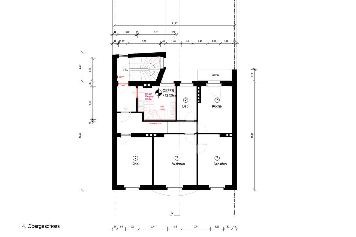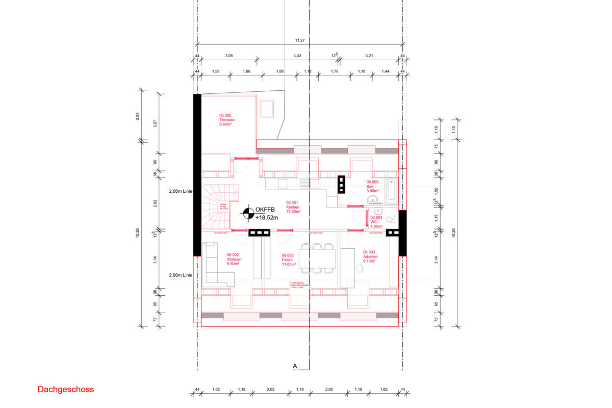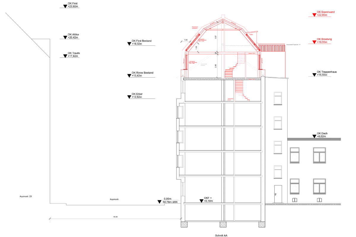 Aufstockung eines Wohn- und Geschäftsgebäudes in Form eines Mansarddaches mit Maisonettewohnung. Entwurf und Genehmigungsverfahren