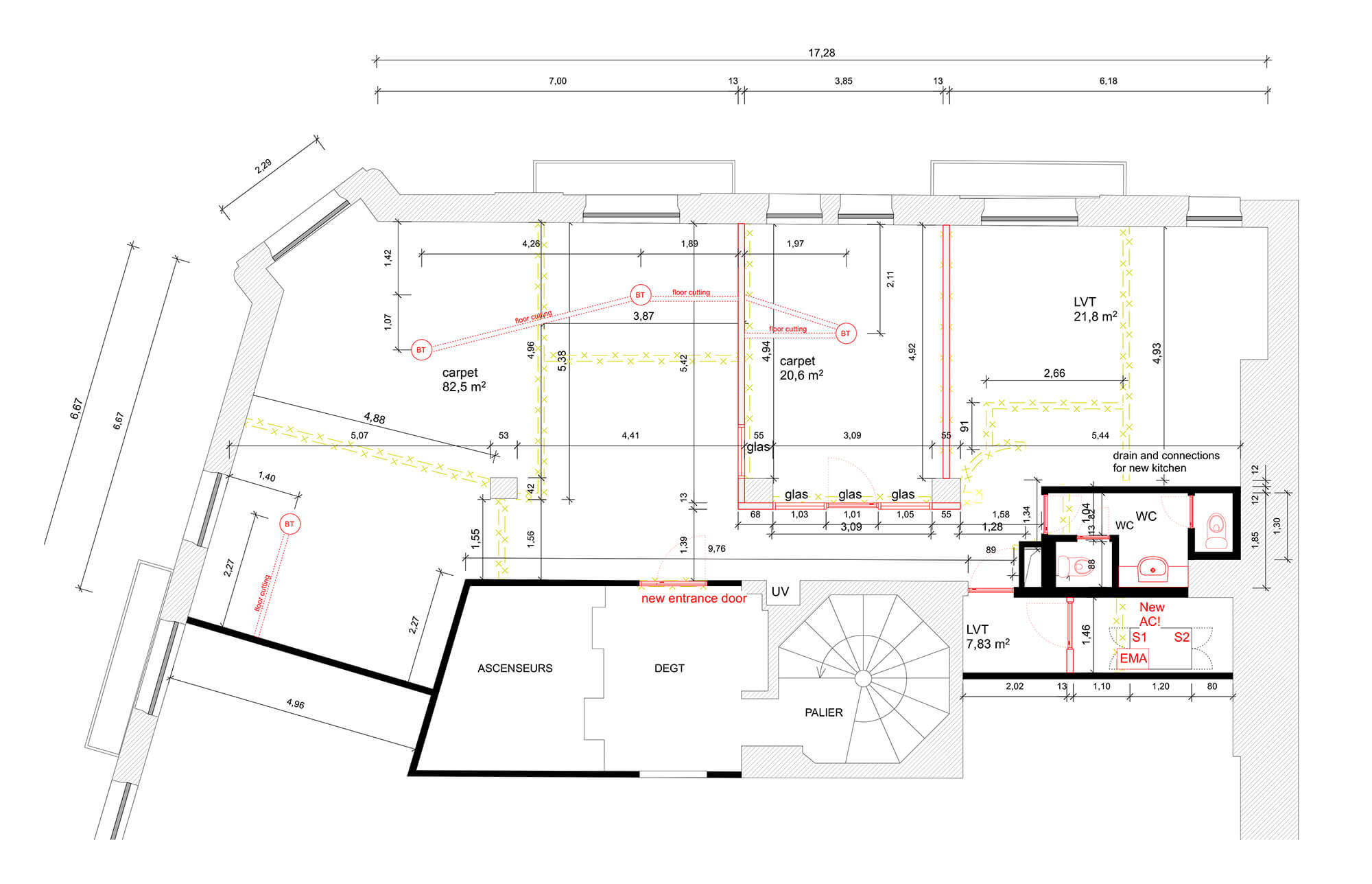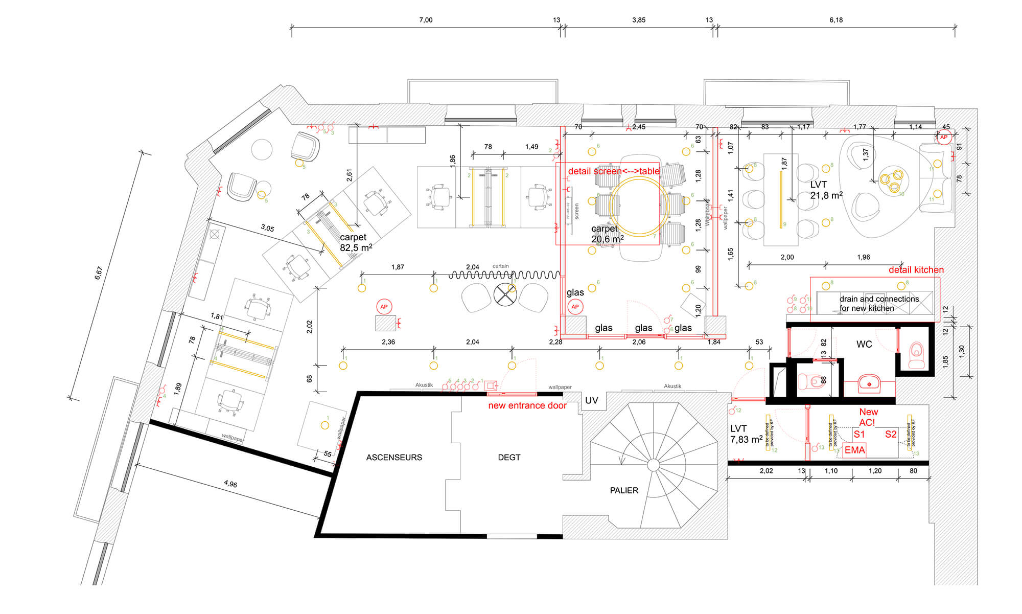 Entwurfs- und Ausführungsplanung sowie anschließende Bauüberwachung zur Sanierung einer Bürofläche im 16. Pariser Arrondissement.